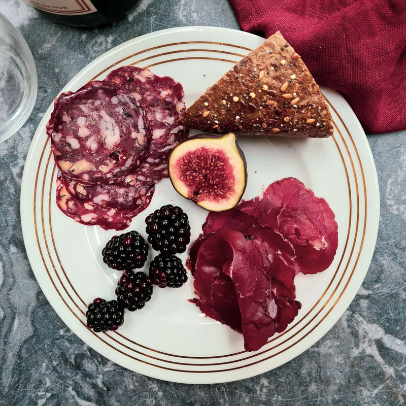 It's our passion so we go deep into charcuterie... you'll find the classics, like Chorizo and Beef Bresaola, made British... and new, delicious flavour experiences created by our founder and ex-chef, Alex. Like the luxurious Venison Old Fashioned (inspired by the cocktail), and spicy Hogget (that's Lamb) Merguez, inspired by the North African sausage of the same name.