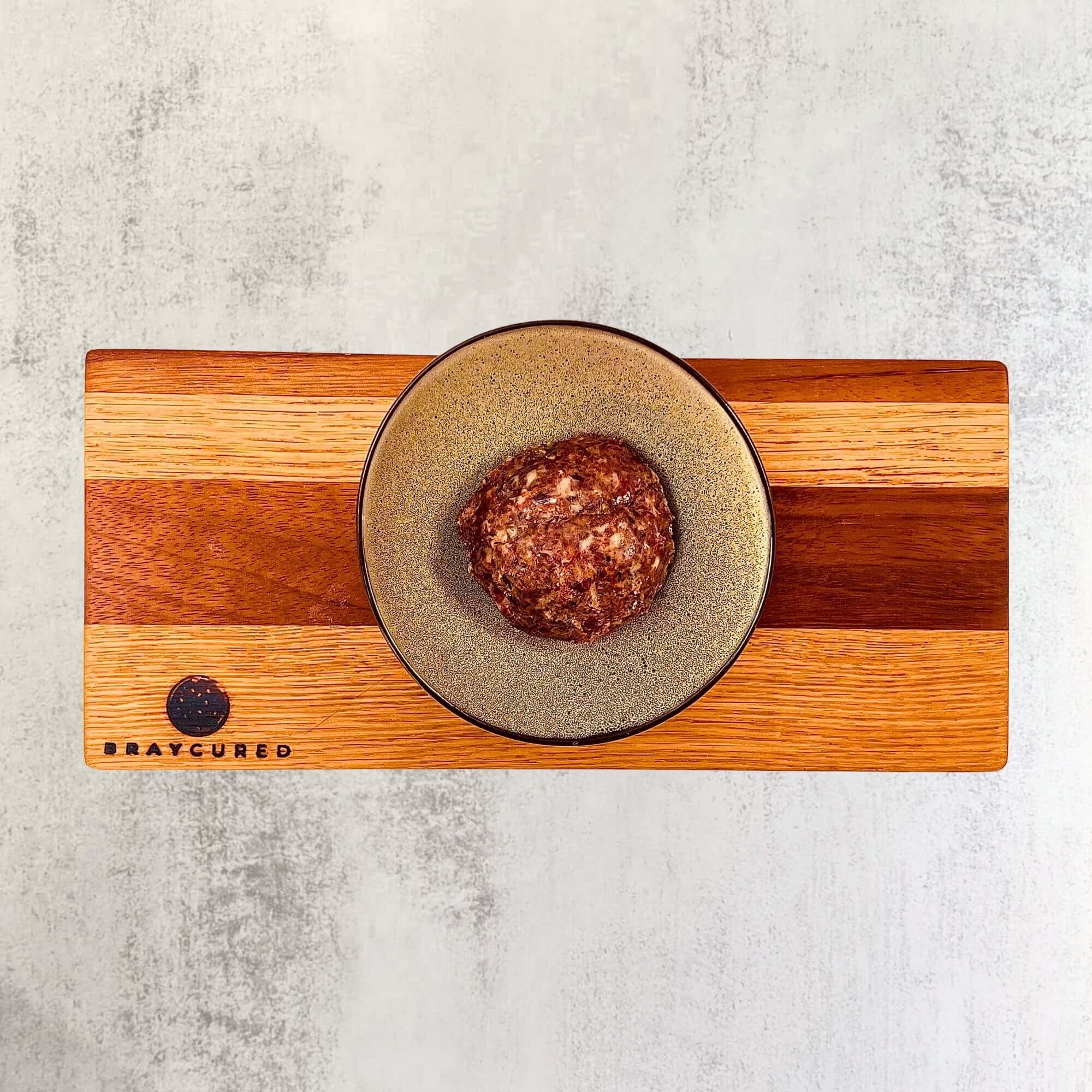 Looking like half a little moon rock, we bring you the Bray Cured Meateor. It's meat, it looks like a meteor, it makes your meals meatier.