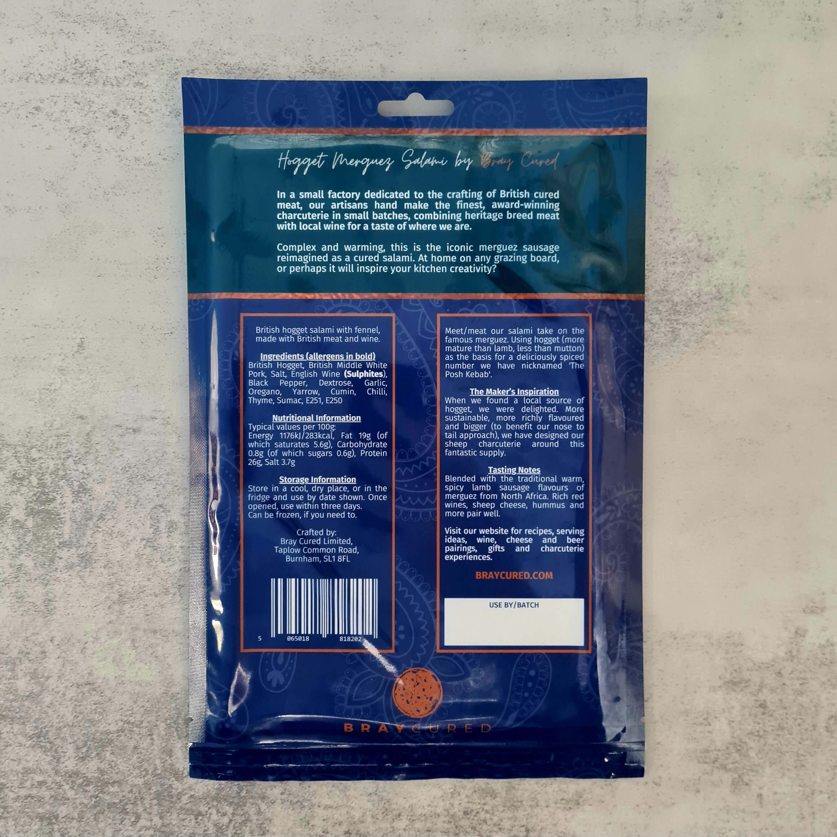 Meet/meat our salami take on the famous merguez. Using hogget (more mature than lamb, less than mutton) as the basis for a deliciously spiced number we have nicknamed 'The Posh Kebab'.