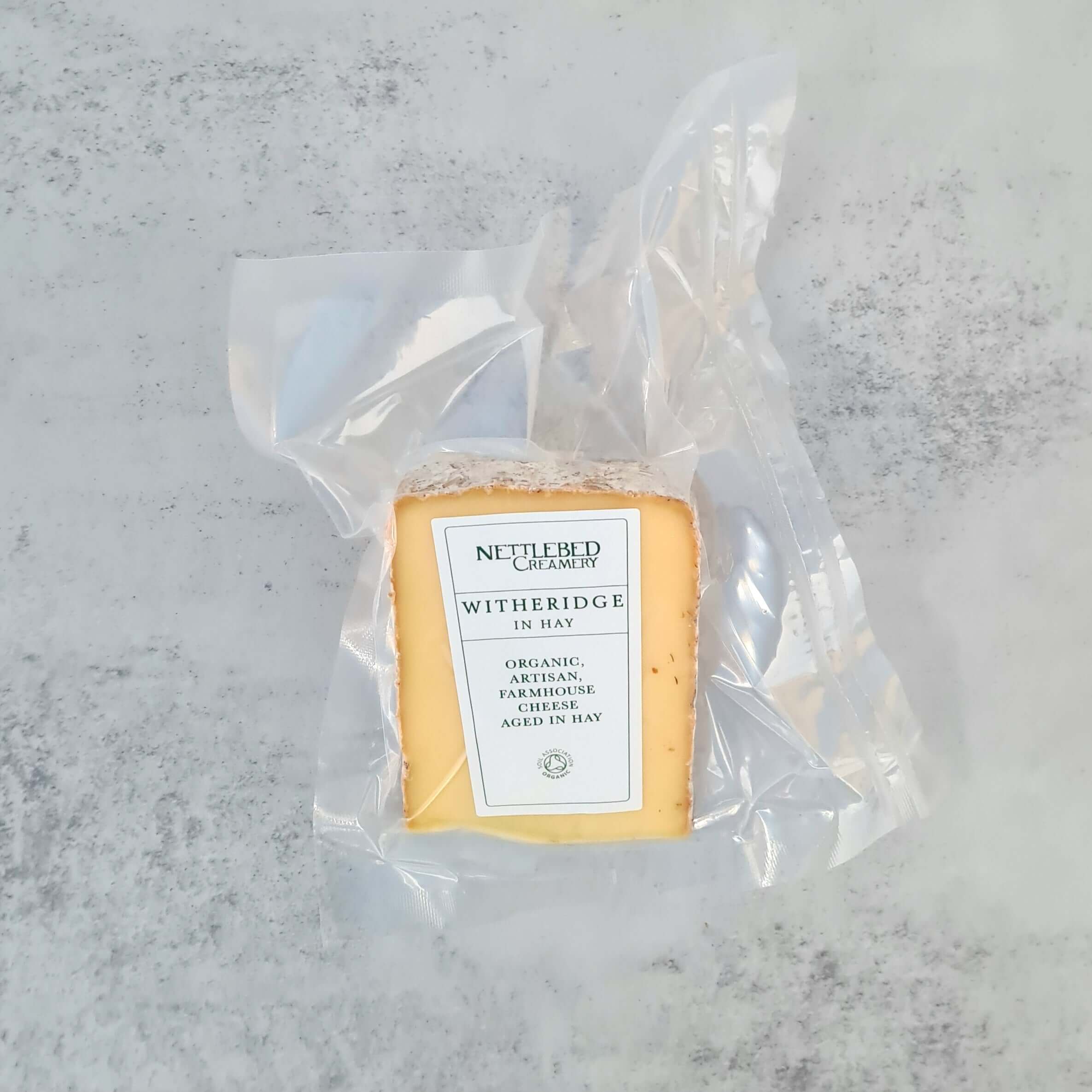 The strength of a mature cheddar, the sweetness of an Alpine and grassy notes from the hay. This notable cocktail of flavours makes Witheridge a winner with charcuterie, especially bresaolas, where its oomph makes it a good parmesan alternative, and the grassy notes pick up beautifully on the herbaceous-ness of our Flower Meadow Hogget Bresaola particularly.