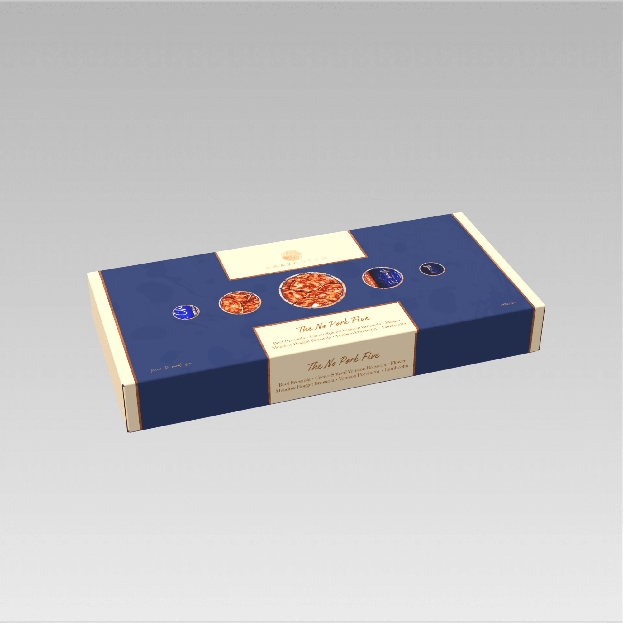 When pork shall not pass, this selection of superb charcuterie still will. Beautifully gift boxed, this five combines a 60g pack of our Classic Bresaola, Cacao-Spiced Venison Bresaola, Hogget Bresaola, Venison Porchetta and Lambcetta.