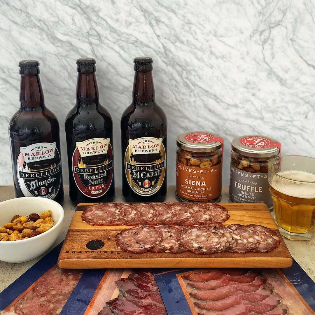 Large Charcuterie, Cocktail Nuts and Beer Hamper. When sir wishes to feast, he will require a big him-per. A cornucopia of our award-winning cured meat, locally brewed beers from Rebellion... Read More