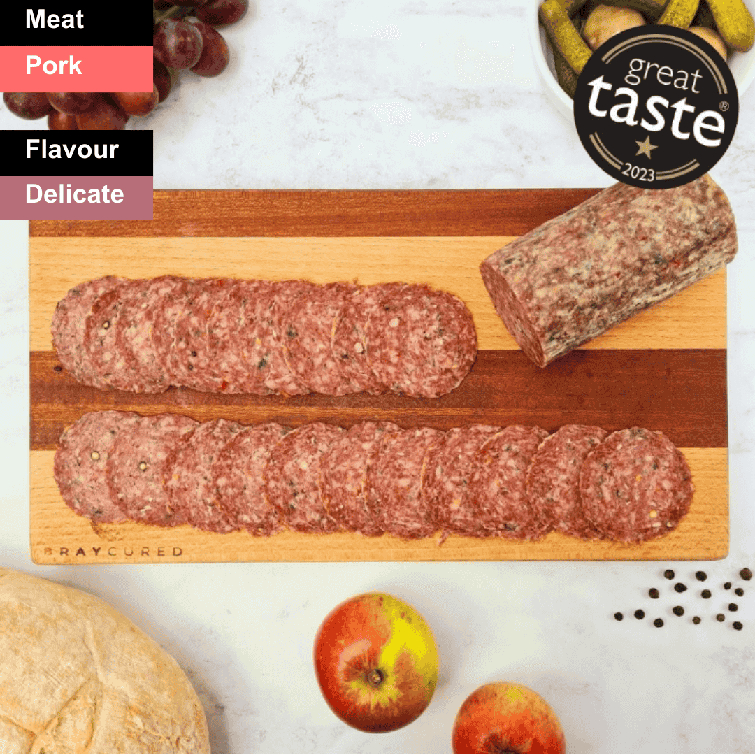 Meet/meat our best-selling salami in it's unsliced format. A classic salami for you to sliced at table, or cook into gourmet charcuterie goodness.